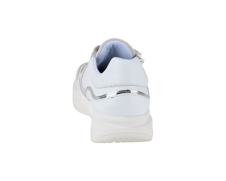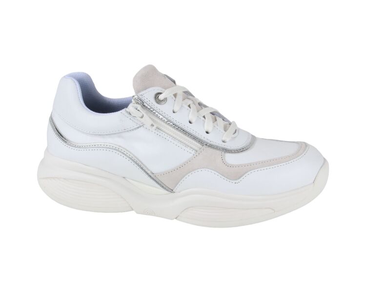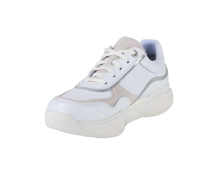 Mooie sneaker van het merk Xsensible, model SWX11. Deze sneaker is gemaakt van leer met details in het zilver en beige. Naast een vetersluiting heeft de sneaker ook twee ritssluitingen dit zorgt ervoor dat de sneaker makkelijk aan- en uit te trekken is. De binnen voering is van leer en heeft een uitneembaar voetbed.